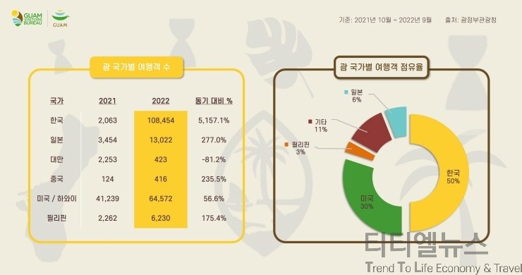 - 팬데믹 이후 괌 방문 외국인 중 한국인이 절반··· 인기 여행지 입증