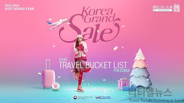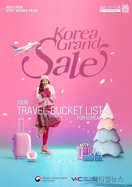 [티티엘뉴스] 문화체육관광부(이하 문관부)는 (재)한국방문위원회(이하 방문위)와 함께 1월 12일(목)부터 2월 28일(화)까지 ‘2023 코리아그랜드세일(Korea Grand Sale)’을 개최한다고 밝혔다.