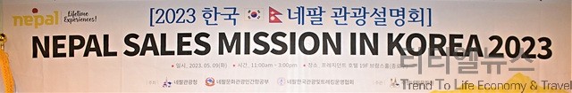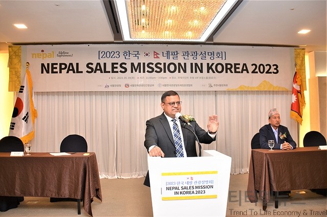 [티티엘뉴스] 네팔관광청 ‧ 네팔문화관광민간항공부 ‧ 네팔한국관광및트레킹운영협회가 공동 주최하고, 주한 네팔문화원이 주관한 ‘한국 ‧ 네팔 관광설명회(NEPAL SALES MISSION IN KOREA 2023)’가 지난 9일 오전 11시 서울 프레지던트호텔 19층 브람스홀에서 개최됐다.
