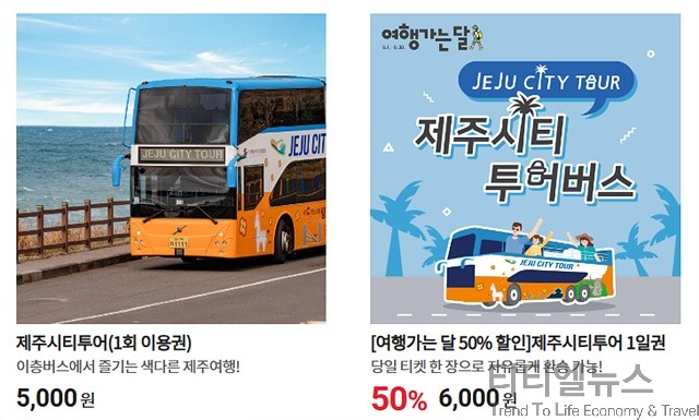 또한, ‘여행가는달’을 맞이해 6월 한달동안 탐나오를 통해 시티투어버스(해안코스, 도심코스) 1일 이용권을 50% 할인된 가격(12,000원 -> 6,000원)에 이용할 수 있는 프로모션도 함께 진행하고 있다.