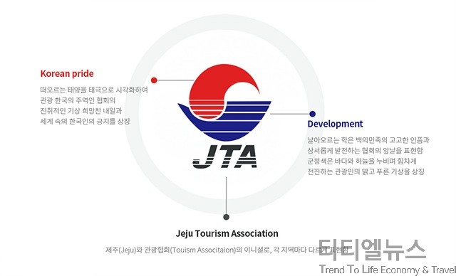 ▲제주특별자치도관광협회 BI와 디자인 설명 (출처 제주도관광협회)