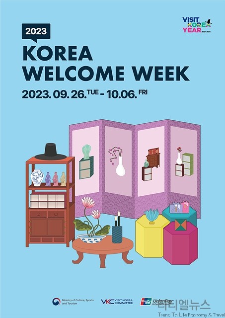 [티티엘뉴스] 문화체육관광부(장관 박보균, 이하 문관부)와 (재)한국방문의해위원회(위원장 이부진, 이하 방문위)는 지난 7월 ‘K-뷰티 바캉스’를 테마로 환영주간을 성황리에 마무리한 데 이어, 오는 26일부터 10월 5일까지 ‘2023-2024 한국방문의해 기념 환영주간(Korea Welcome Week)’ 두 번째 행사를 개최한다고 25일 밝혔다.
