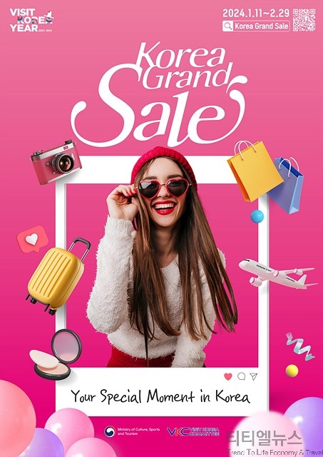 [티티엘뉴스] 문화체육관광부(장관 유인촌, 이하 문관부)는 (재)한국방문의해위원회(위원장 이부진, 이하 방문위)와 함께 1월 11일(목)부터 2월 29일(목)까지 ‘2024 한국방문의 해’ 첫 번째 행사로 ‘2024 코리아그랜드세일(Korea Grand Sale 2024)’을 개최한다고 11일 밝혔다. 유인촌 장관은 이날 온드림 소사이어티(서울 중구)에서 열린 개막행사를 찾아가 관계자들을 격려하고 외국인 관광객을 환영했다.