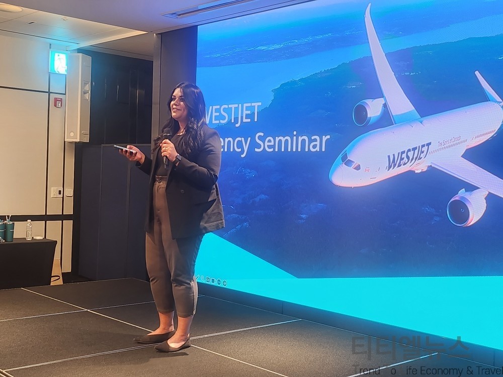 나타샤 엘리아스(Natasha Elias) 웨스트젯 국제 영업 관리자(▲)는 "웨스트젯은 지난 28년 동안 알버타로 향하는 여행객들을 수송해왔다. 웨스트젯에 탑승 순간부터 알버타 여행이 시작된다고 생각한다. 지난 12월 웨스트젯은 오는 5월 중순부터 서울과 캘거리 직항 노선 운항을 발표했고 이는 웨스트젯의 아시아의 두번째 노선이다. 웨스트젯에 대한 매우 유익한 정보들을 소개하는 이번 자리를 마련할 수 있도록 도움을 준 모든 관계자들에게 감사를 전한다"고 말했다.