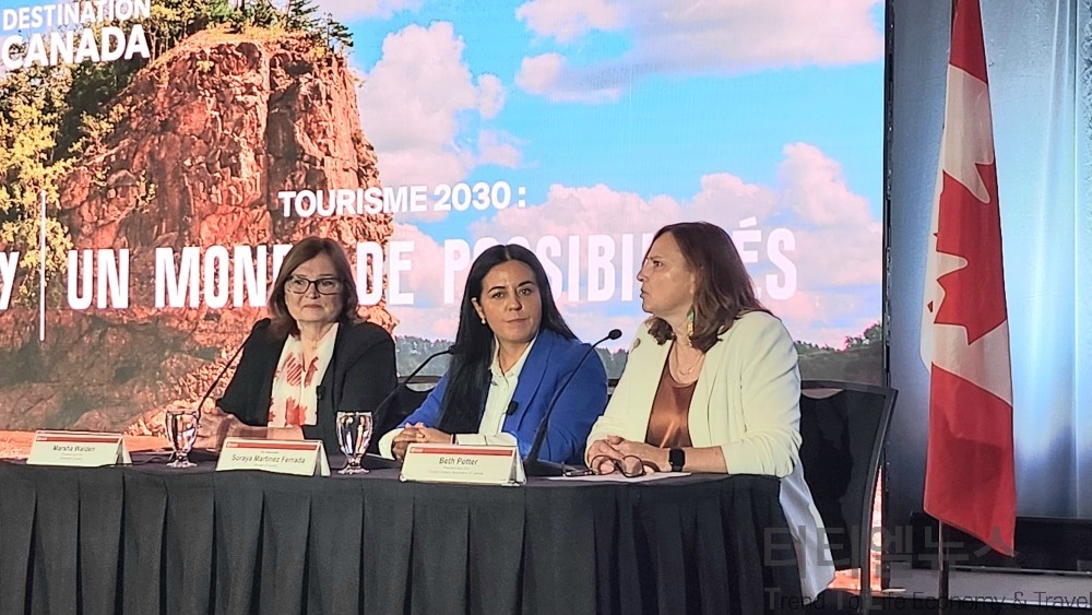 현지시각 16일 알버타주 에드먼턴에서 열린 관광교역전인 랑데부캐나다2024(Rendez-vous Canada 2024) 일정 중간에 마련된 기자회견에서 마샤 월든(Marsha Walden) 캐나다관광청 CEO와 소라야 마르티네즈 페라다(Soraya Martinez Ferrada) 관광부 장관은 캐나다의 글로벌 관광경쟁력을 높이고 2030년까지 연간 최대 1600억 캐나다 달러의 수익을 창출하기 위해 '기회의 세계(A World of Opportunity)'이라는 슬로건 하에 관광 로드맵을 발표했다.