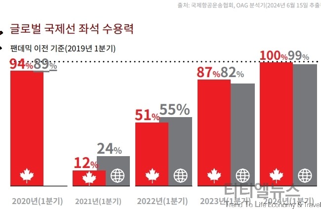 [티티엘뉴스] 캐나다의 여행 수요가 팬데믹 이전 수준으로 완전히 회복한 가운데 2024년 캐나다 여행 수요가 덩달아 상승세를 보이고 있다.