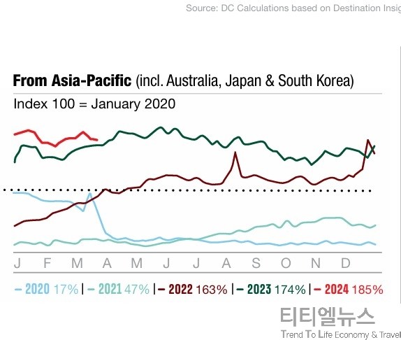 캐나다로의 공급석이 크게 늘어난 5월 이전인 2024년 4월을 기준으로도 한국인의 캐나다 방문객 수는 전년 동월 대비 26% 증가했으며, 1월부터 4월까지의 방문객 수도 동기 대비 23% 증가한 것으로 드러났다.