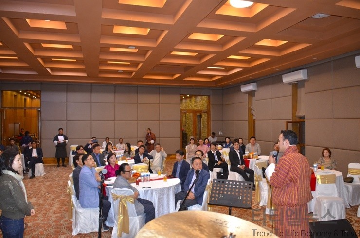 이어 저녁 6시 30분에는 리옹포 남걀 도르지(H.E. Mr. Lyonpo Namgyal Dorji) 부탄 산업통상부장관 주최 환영 만찬이 진행됐다. 지난 5월 국제관광인포럼 초청으로 서울에서 개최됐던 포럼 행사와 제39회 서울국제관광전에도 참석해 가장 활발한 활동을 펼쳤던 리옹포 남걀 도르지 장관은 부탄까지 온 참석자들을 대대적으로 환영했다.