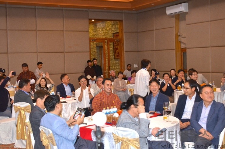 환영 만찬은 화기애애 분위기 속에 성황리에 개최됐다. 식전 행사로 진행된 부탄의 국민가수 우겐과 밴드의 신나고 경쾌한 공연으로 참석자들은 부탄의 첫날 밤을 즐겁고 신나게 보냈다.