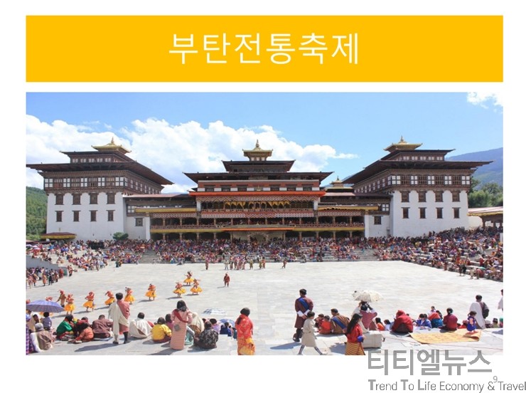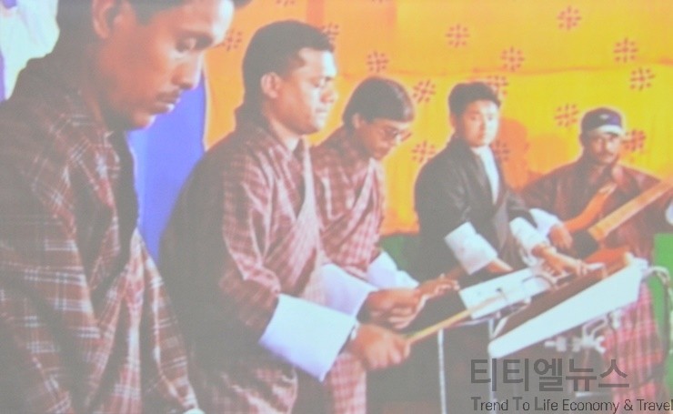 ▲부탄 문화의 날 행사에서 부탄 홍보에 대한 PT 부탄의 전통 축제 영상 모습