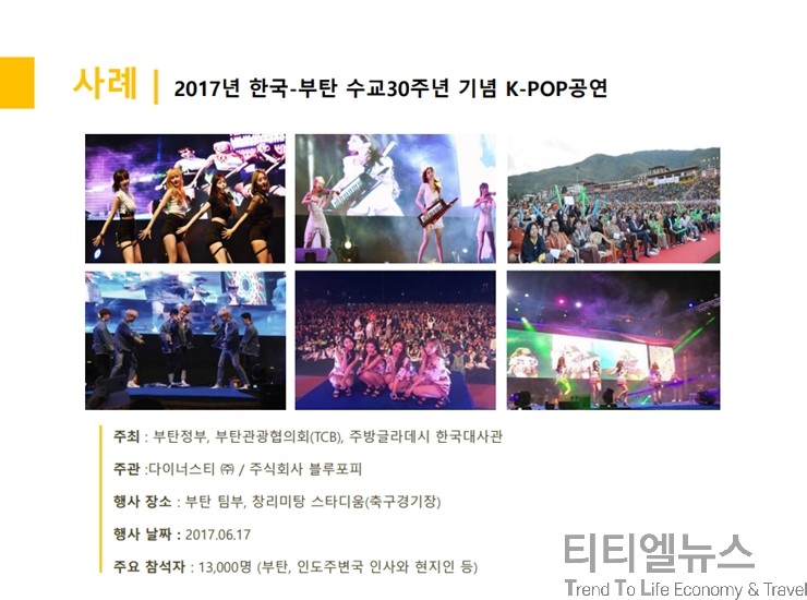▲부탄 문화의 날 행사에서 부탄 홍보에 대한 PT 지난 2017년 개최됐던 한국부탄수교 30주년 기념 K-POP 공연 영상 모습