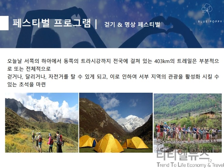 ▲부탄 문화의 날 행사에서 부탄 홍보에 대한 PT 걷기&명상 페스티벌 프로그램 영상 모습