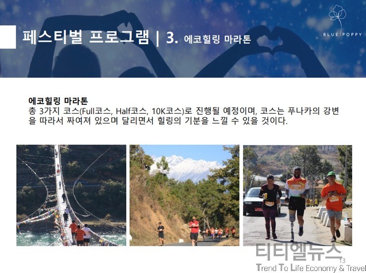 ▲부탄 문화의 날 행사에서 부탄 홍보에 대한 PT 페스티벌 프로그램 에코 힐링 마라톤 영상 모습
