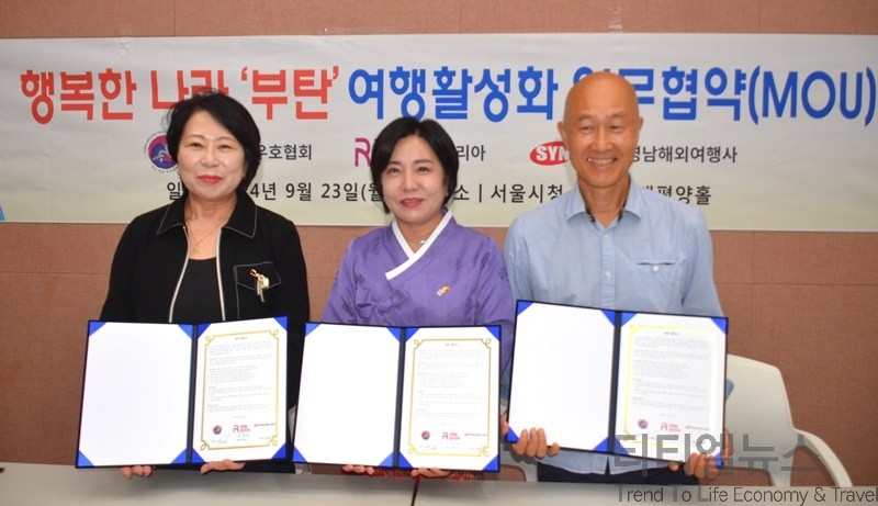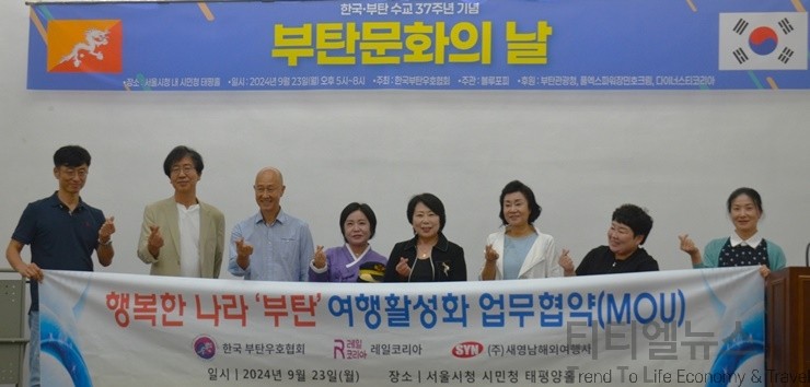 이날 행사에서 부탄여행 활성화를 위해 한국부탄우호협회와 새영남해외여행사, 레일코리아는 업무협약식을 체결했다. 이번 협약을 통해 한국부탄우호협회(회장 김민경), 레일코리아(대표이사 김용옥), 새영남해외여행사(대표이사 정경해) 등 3개 사는 상호 신뢰와 협력을 바탕으로 부탄의 문화관광 활성화와 사회적 가치 확대를 위하여 사업발전, 지속적인 교류와 사업개발 등을 추진해 나가기로 협약했다. 특히, 3개 사는 유기적인 협업을 통하여 상호 협력할 수 있는 사항을 정하고, 이를 성실히 이행함으로써 참여기관의 교류와 지역 기반을 통한 부탄여행 활성화, 상호 비즈니스 확대에 기여함을 목적으로 적극 협력해 나갈 계획이다.