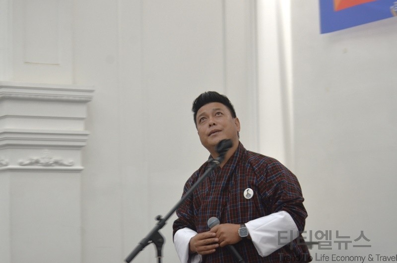 부탄에서 하고자 하는 공정관광은 지역관광으로부터 이끌어가는 공정관광이야말로 우리가 지속적으로 꾸준히 성장시킬 수 있는 그런 관광이 되지 않을까. 그래서 관광인 한 사람으로서 또한 한국부탄우호협회 회장으로 제가 맡은 5년 동안 저는 부탄에서 한국을 알리고 또 한국에서 부탄을 알리는 그런 역할을 하고자한다. 우선 관광발전을 지속가능한 자역관광으로 경제적인 발전이 아닌 부탄 사회와 상인들이 함께 어울리는 그런 관광을 만들어 가자는 것이다. 부탄에서 3명의 가수가 왔는데 부탄에는 음악 학원이 없다. 음악 전공과목도 없다. 대학에 전공과도 없고 음악을 가르치는 교수도 없다. 독학으로 후배를 양성하고 그렇게 성장하고 있다.