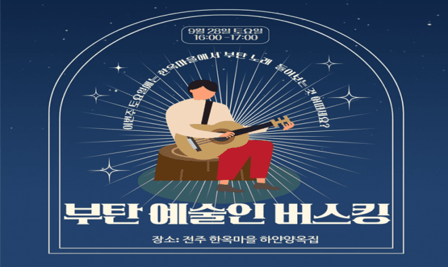 (재)전라북도특별자치도문화관광재단(대표이사 이경훈)과 한국부탄우호협회(회장 김민경)은 28일 오후 4시, 전주 한옥마을 하얀 양옥집에서 ‘부탄 예술인 버스킹’을 공동 개최한다고 27일 밝혔다.