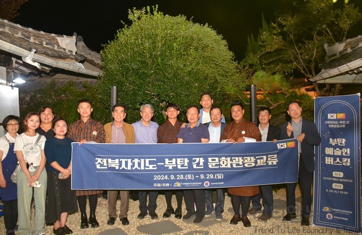 [티티엘뉴스] 전북특별자치도문화관광재단(대표이사 이경윤. 이하 재단)은 지난 28일부터 29일까지 1박 2일간 한국부탄우호협회(회장 김민경. 이하 우호협회) 초청으로 한국을 방문한 부탄의 국민가수 우겐과 떠오르는 신세대 가수 좀비, 쌈패 등 관계자 6명(이하 방문단)을 초청해 전주와 완주 일원에서 ‘전북자치도-부탄 간 문화관광교류’ 행사를 성황리에 개최했다.