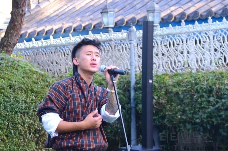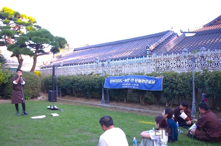 28일 오전 11시 30분 전주에 도착한 방문단 일행은 전주한옥마을 내 위치한 ‘하얀양옥집’에서 오후 4시부터 5시까지 1시간 동안 ‘부탄 예술인 버스킹’으로 문화관광교류 행사 첫 일정을 본격 시작했다.