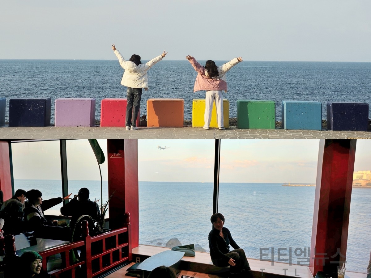 석회암 바다에서 물질 하는 해녀, 그 바다 위로 날아오르는 비행기를 볼 수 있는 제주의 시그니처 뷰를 볼 수 있는 카페들도 곳곳에 있으니 달콤한 케이크와 커피 한 잔 하고 싶은 여행객에게도 안성맞춤이다.