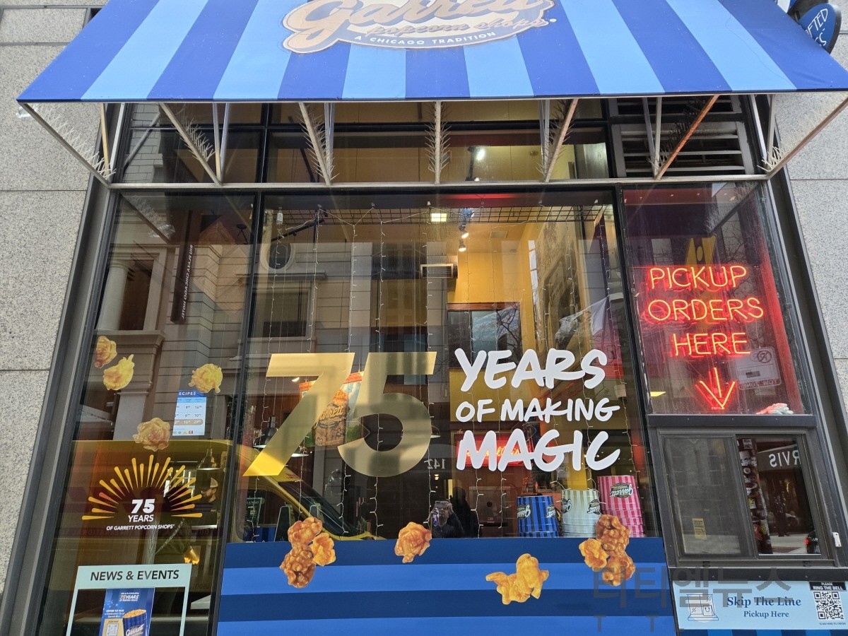 시카고 스타일 팝콘을 맛 볼 수 있는 곳이다. 이곳은 시카고를 대표하는 팝콘 가게로 카라멜 팝콘과 치즈 팝콘을 함께 섞어 먹는 개릿 믹스(Garrett Mix) 메뉴가 유명하다. 단짠의 조화가 매력적이다.