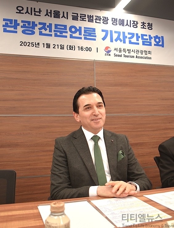 글로벌관광 명예시장으로 위촉된 오시난 케르반 레스토랑그룹 대표 겸 (사)GBA Korea 회장은 서울특별시관광협회가 21일 오후 4시, 서울관광플라자(삼일빌딩) 8층 회의실에서 개최한 ‘오시난 서울시 글로벌관광 명예시장 초청 관광전문언론 기자간담회’에서 글로벌관광 명예시장으로서의 포부를 이처럼 담담히 밝혔다.