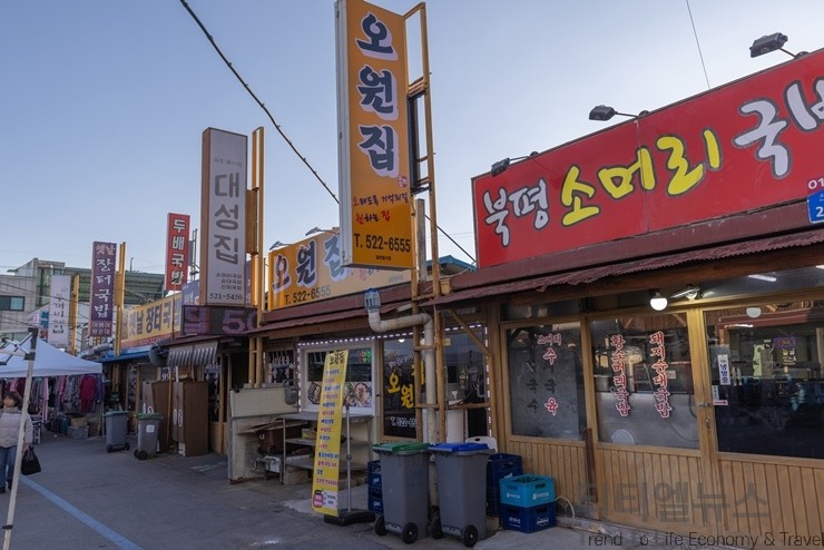 찬바람이 옷깃 사이로 스며드는 날씨, 동해 시내에 오일장이 섰다. 끝자리가 3일과 8일인 날에 열리는 북평민속시장이다. 북평장은 1796년에 시작되었으며, 문화광장은 강원도에서 유명한 쇠전(우시장)이 열렸던 장소다. 쇠전은 꼭두새벽부터 열렸다. 소를 거래하기 위해 먼 거리를 온 사람들은 거래를 앞두고 막걸리 한 사발과 국밥 한 그릇으로 배를 채웠다. 우시장은 2008년 삼척시 미로면에 새롭게 개장하면서 사라졌지만, 그 흔적은 국밥 거리로 남았다. 동해 주민은 ‘영동지역 사람들에게 북평민속시장의 국밥집은 마음의 고향 같은 장소’라고 말한다.