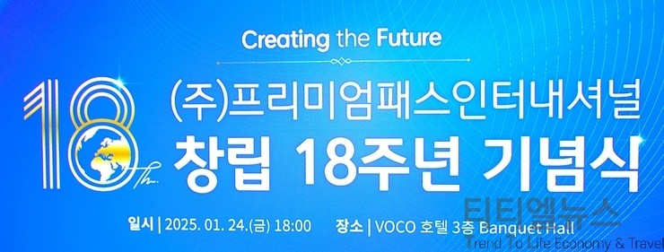 ㈜프리미엄패스인터내셔널 김응수 대표는 지난 1월 24일 오후 6시부터 9시 30분까지 회현동에 위치한 VOCO호텔 3층 연회장에서 개최한 ‘(주)프리미엄패스인터내셔널 창립 제18주년 기념식’에서 이와 같은 기업의 목표와 이를 위한 ‘2025년 비전’을 다양한 협력사들과 함께 공동체를 형성해 강력하게 추진해 나갈 것이라고 밝혔다.