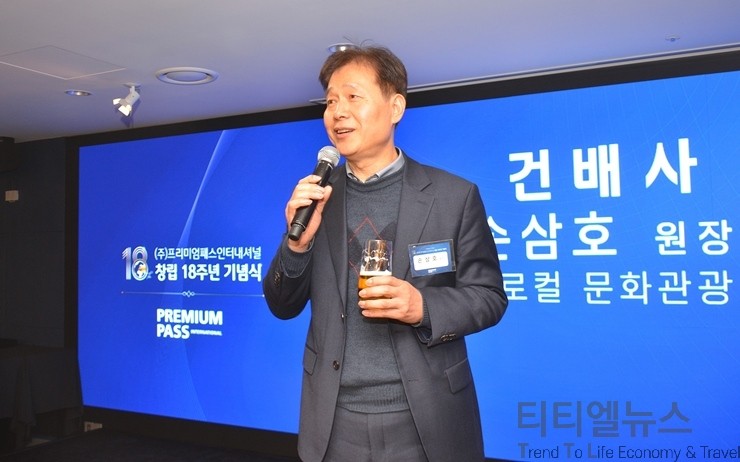 오늘 우선 초대해 주셔서 너무 감사드리고 정말 영광된 자리였던 것 같다. 김응수 대표와 프리미엄패스인터내셔널의 임직원 모든 분들께 정말 축하드린다는 말씀 먼저 드리겠다. 사람이 지니는 힘 중에 지속성을 지닌 힘이 제가 보기에는 가장 따뜻함이 주는 힘인 것 같다. 요즘 우리나라 사정도 그렇고, 나라 걱정, 일 걱정에 다들 정말 마음을 놓을 날이 없었을 텐데 저도 마찬가지다. 그런데 오늘 이 자리에서 제가 정말 따뜻함이 무엇인지 또 그 힘이 얼마나 큰 것인지 그런 것을 새삼 또 느끼게 됐다. 이런 기회를 주셔서 너무 감사하다. 건배사는 프리미엄패스인터내셔널 18년, 정말 청춘의 정점에서 이렇게 뜻깊은 행사를 한다는 게 더 보기가 좋다. 한 개인이든 한 조직이든 18년 동안 이렇게 성장해 오고 또 18년을 떳떳하게 남들에게 이렇게 내어놓을 수 있다는 것은 쉽지 않은 일인 것 같다. 한 나무가 18년 동안 자라면 정말 웬만한 폭풍우에도 견딜 만한 튼튼한 나무가 될 것 같다. 그런 뜻에서 프리미엄패스인터내셔널 18년이라고 하는 나무가 중심이 되어서 숲을 이루었으면 좋겠다 그런 생각을 했다. 제가 축하 드리는 의미에서 건배의 용어는 더불어 쭉 이렇게 하겠다. 축하드린다며 건배사를 마쳤다.