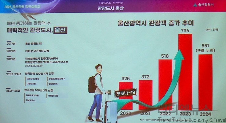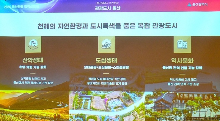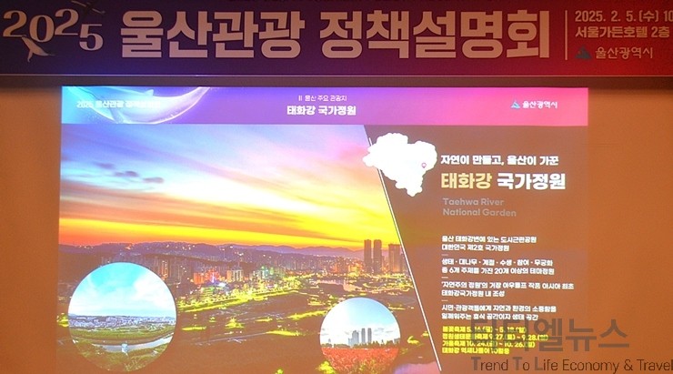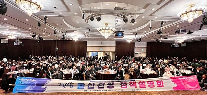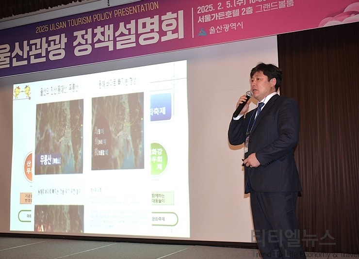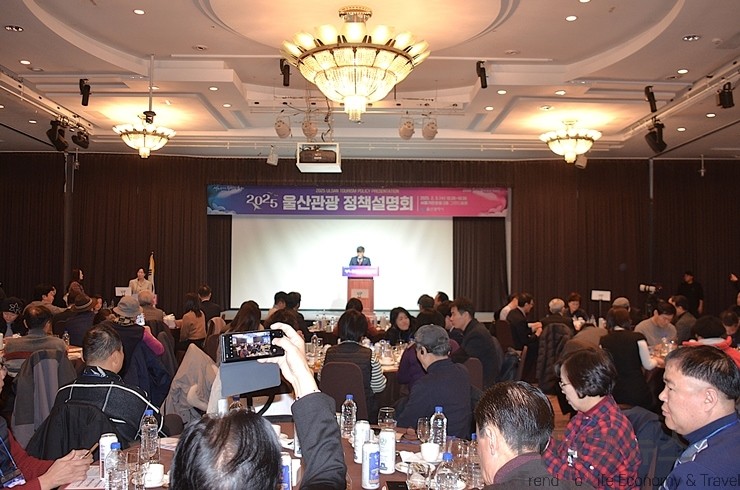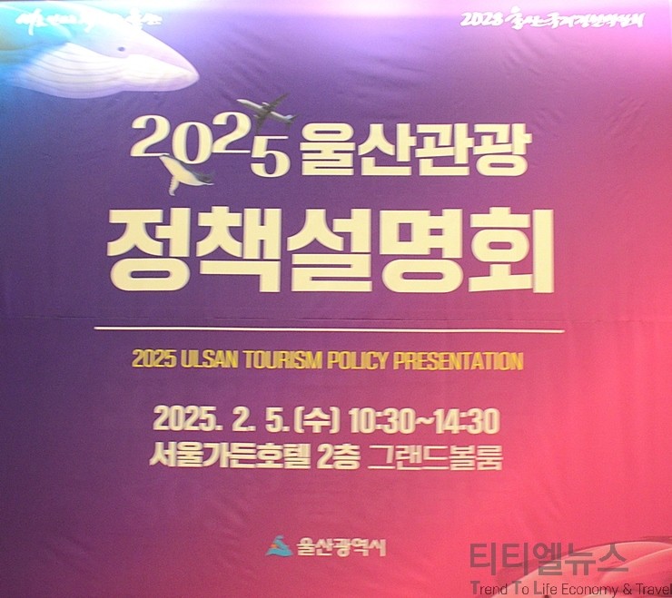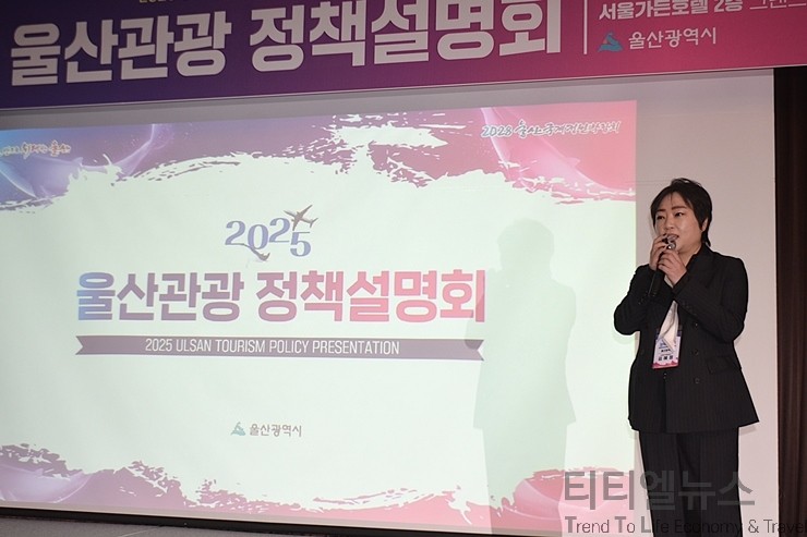 [티티엘뉴스] 울산광역시(시장 김두겸)는 5일 오전 10시 30분부터 서울가든호텔 2층 그랜드볼룸에서 울산의 주요 관광 정책과 자원을 소개하고, 관광 업계 간의 네트워킹을 통해 서로 관광객을 더욱더 확대 유치할 수 있는 방안을 모색하기 위한 ‘2025 울산관광 정책설명회’를 성황리에 개최했다.