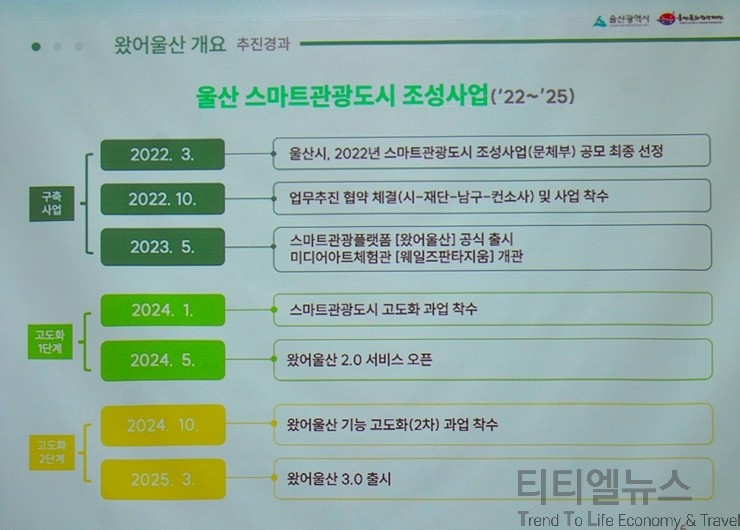 마지막으로 왔어울산 3.0에 대한 소개를 보면, 3.0은 눈 대세인 AI 기능으로 중무장을 할 예정이다. 많은 부분이 개설될 예정인데 몇 가지 살펴보면, 첫 번째 AI 기능 지능 검색 엔진을 탑재해서 맞춤형 사용자 맞춤형으로 관광 정보를 제공하고, 생성형 AI 기반으로 여행 성향 진단을 통해 나만의 여행 코스와 여행 일정을 자동으로 생성해 주는 기능 그리고 울산 포항 경주를 잇는 해오름 관광 도시 콘텐츠 연계 서비스도 제공될 예정이라고 밝히면서, 박경수 팀장은 “울산여행에 감사드린다”라고 외치며 설명을 마쳤다.