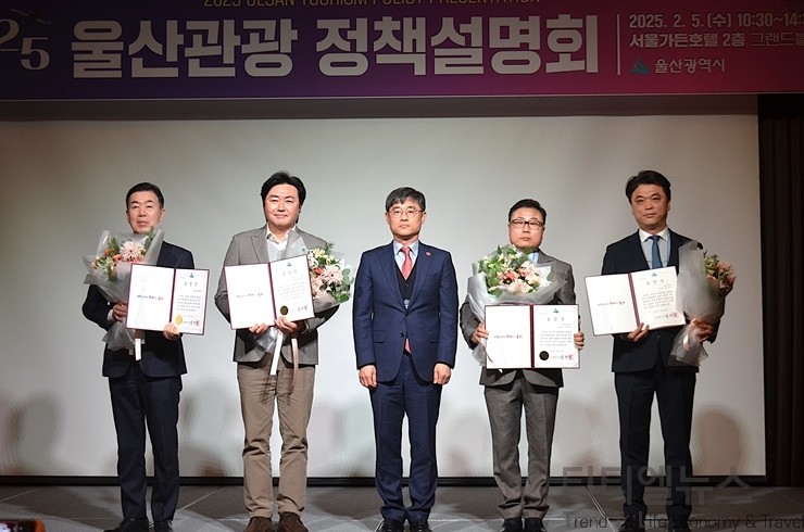 이어 2025년 울산 전담여행사에 대한 지정서 수여식이 진행됐다. 울산 전담여행사 지정은 지난해 울산으로 관광객을 모집해 준 130개 여행사 중 상위 10개사를 기준으로 선정됐다. 선정된 업체는 ▷유엠아이티주식회사(대표 김기호) ▷대동성여행사(대표 김준걸) ▷명성국제여행사(주)(대표 박병선) ▷(주)신신여행사(대표 국규보) ▷(주)세운트래블(대표 박인규) ▷(주)영한여행사(대표 황챠이친) ▷(주)굿모닝여행사(대표 이태원) ▷(주)행복을주는사람들(대표 배성준) ▷(주)동백여행사(대표 민정애) ▷홍익여행(주)(대표 황윤하) 등이며, 김두겸 울산광역시장을 대신해 전경술 국장이 지정서를 수여했다.