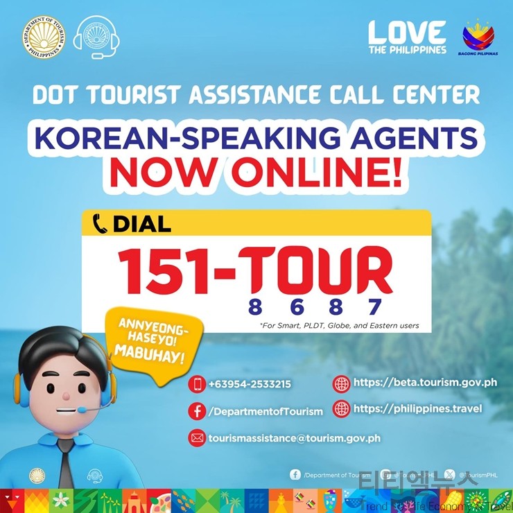 [티티엘뉴스] 이달 1일부터 필리핀 현지 관광 지원 콜센터(Tourist Assistance Call Center, TACC)에서 한국어로 상담이 가능해졌다. 전담 한국어 상담원이 매주 월요일부터 금요일까지, 필리핀 표준시 기준 오전 8시부터 오후 5시까지 한국인 여행자들의 문의에 응대할 예정이다.