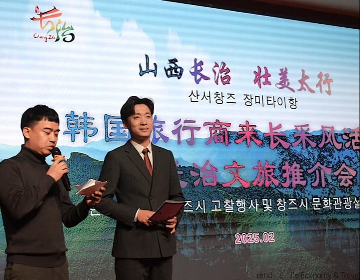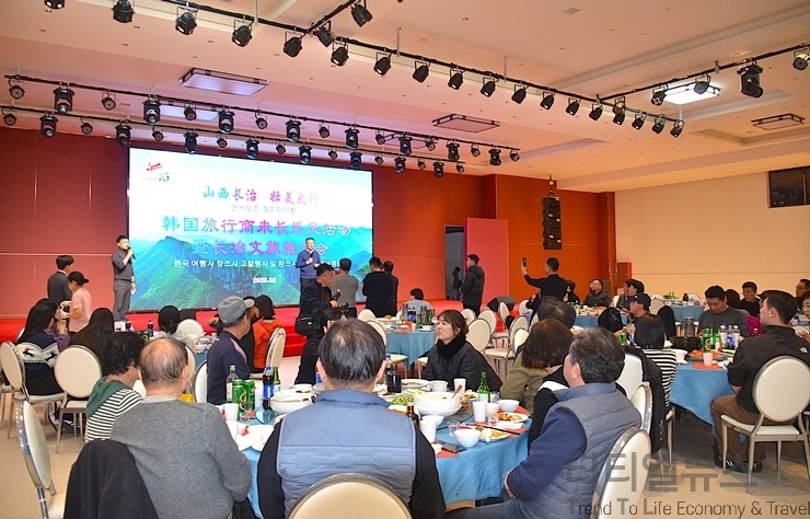 업무협약을 마친 팸투어 일행은 황애동풍경구 투어에 나선 후 오후에는 창평온천호텔 대회의실에서 장치시 문화여유국 주최 ‘한국 여행사 장치시 고찰행사 및 장치시 문화관광설명회’를 겸한 ‘태항산 답사단 일행을 위한 환영 만찬’이 성대하게 진행됐다.