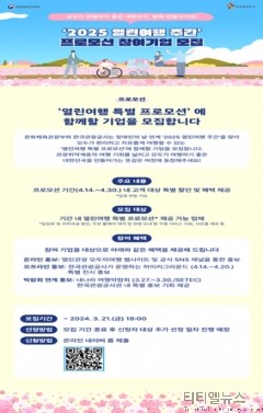 [티티엘뉴스] 문화체육관광부와 한국관광공사(이하 공사)는 오는 21일까지 ‘2025 열린여행 주간(4.14~30)’ 특별 프로모션에 참여할 기업을 모집한다.