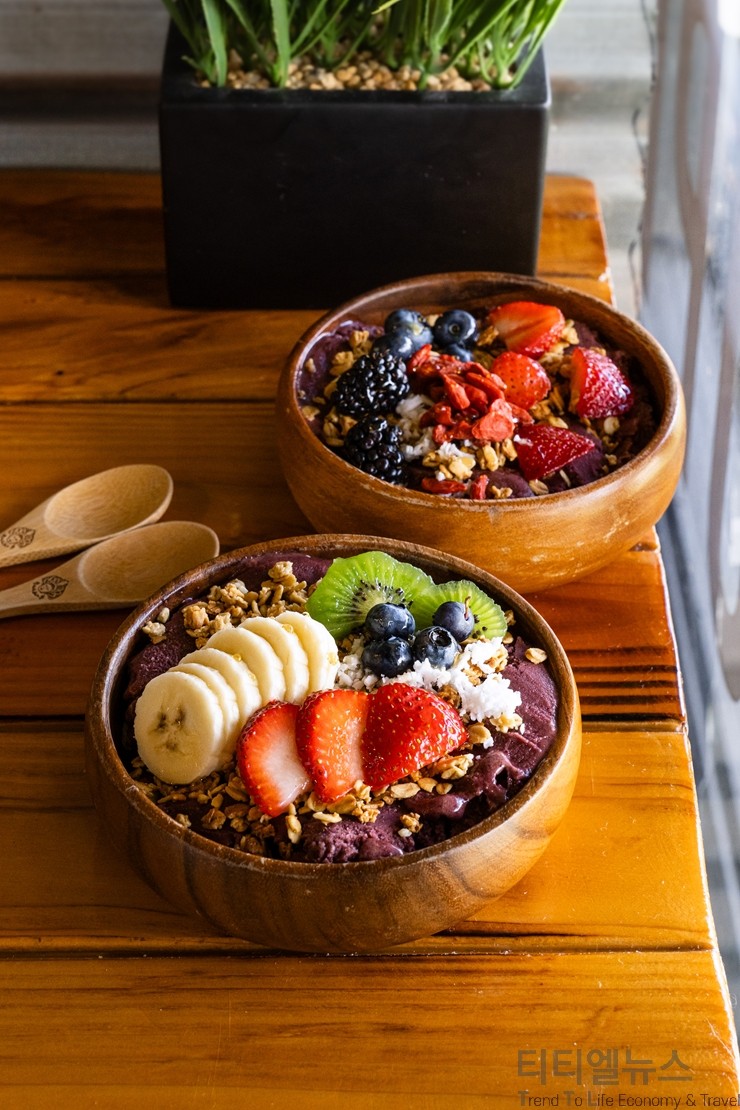 디저트로는 ‘마이티 퍼플(Mighty Purple)’에서 아사이볼을 추천한다. 보랏빛 아사이볼은 심혈관 건강에 도움을 주는 슈퍼푸드로, 건강을 생각하는 이들에게 필수품이다.