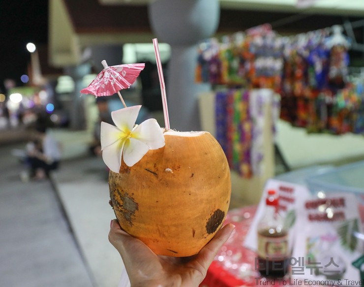 괌에서 꼭 경험해야 할 특별한 주스, 바로 차모로 야시장의 생코코넛 주스는 꼭 마셔보자. 신선한 코코넛을 그대로 갈라 마시는 주스는 수분과 미네랄이 풍부해 자연의 단맛을 느낄 수 있다. 코코넛을 다 마신 후, 과육을 간장과 함께 먹으면 참치회 맛이 나는 신기한 경험까지 할 수 있다.