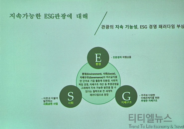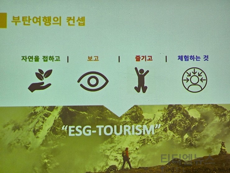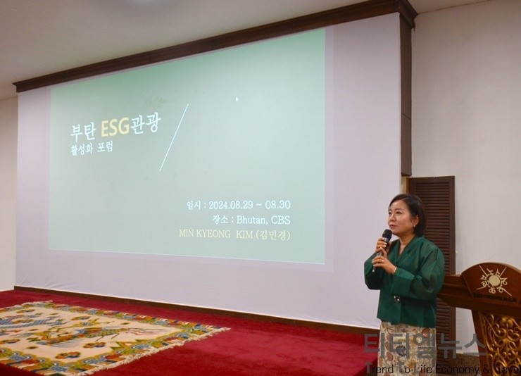 김 회장은 지속가능한 ESG 관광에 대해서도 설명을 이어갔다. ESG는 환경과 사회와 지배 구조인데 부탄이 좋은 이유는 자연적인 환경이라면서, 부탄은 지배 구조가 국왕 폐하 중심으로 거버너가 아주 잘 되고 있다. 또한, 부탄은 공동체 사회이기 때문에 나 혼자의 발전보다는 공동체 발전을 우선시하고 있어 ESG관광 포럼을 부탄에서 시도하게 됐다고 밝혔다.