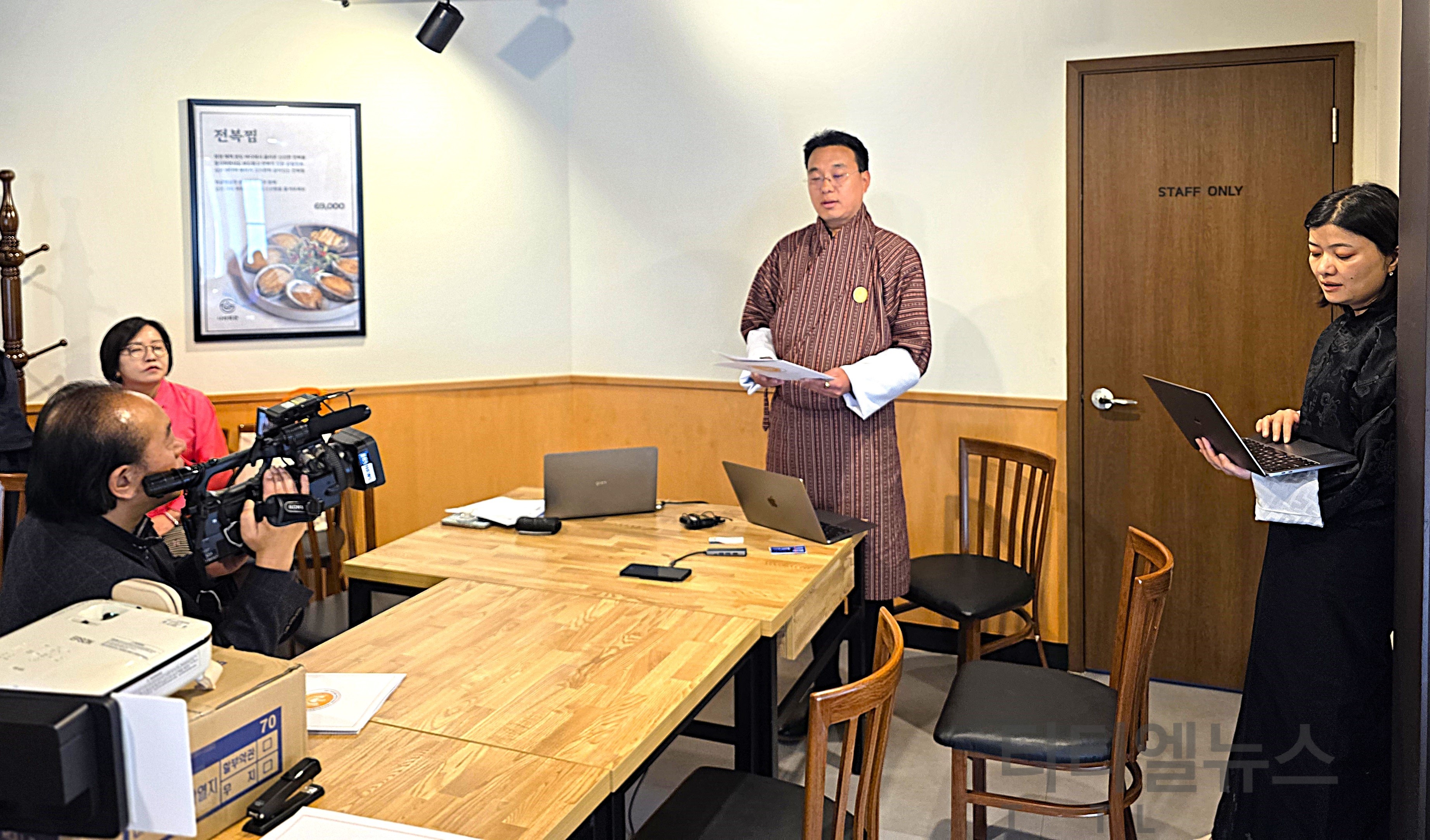 부탄 왕실 고위급 인사인 다쇼 타시 도르지 회장은 이날 기자회견에서 인사말을 통해 “무엇보다 먼저, 국왕 폐하와 왕비 폐하, 그리고 부탄 국민을 대신해 따뜻한 인사를 전한다”면서, 말문을 열었다.