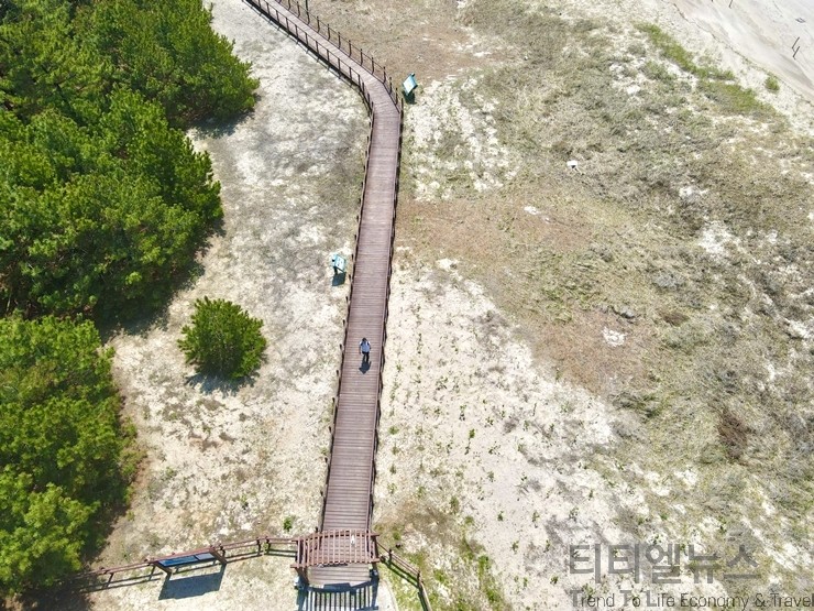 양말을 훌러덩 벗어 던지면 어디든 슈퍼 어싱이 가능하지만, 태안 기지포탐방센터는 세족대와 신발 보관대 등을 갖추면서 탐방객의 편의성을 높였다. 슈퍼 어싱 구간은 총 1.89km, 기지포탐방센터를 기착점으로 두 개의 코스로 나뉜다. 센터를 중심으로 삼봉해변까지 1코스(1.09km), 꽃지해변 방향으로 내려가는 창정교까지 2코스(0.8km)다. 왕복 2시간 정도면 완주할 수 있는 가벼운 산책코스다. 국내 유일한 해안국립공원을 걷는 데다, 170.3km의 태안해변길 가운데 백미로 꼽히는 ‘노을길’을 포함한 구간이니 더욱 특별하다.