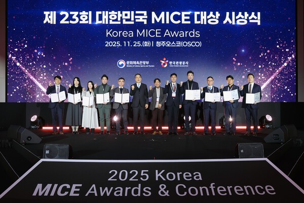 한국관광공사(사장직무대행 서영충)는 충북 청주오스코(OSCO)에서 26일까지 ‘2025 대한민국 MICE 대상 및 컨퍼런스’를 개최한다. ‘새로운 시대, MICE 산업의 변화’를 주제로 열린 이번 행사는 올 한 해 MICE 산업 발전에 이바지한 관계자들을 격려하고, 급변하는 환경 속에서 MICE 산업의 미래 비전을 모색하기 위해 마련됐다.