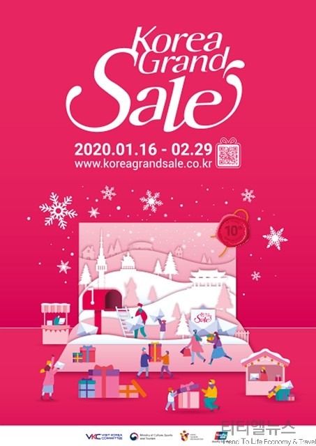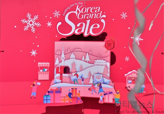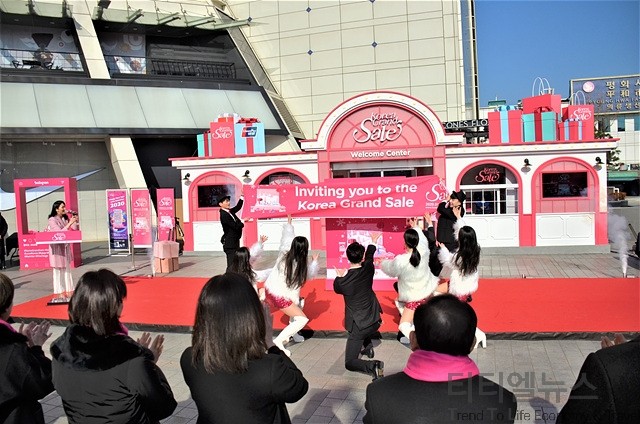 ▲2020 코리아그랜드세일 개막식에서 선보인 대형 초청장 모습 ▲2020 코리아그랜드세일 개막식이 진행된 동대문 두타빌팅 앞에 설치된 2020 코리아그랜드세일 웰컴센터 모습 11회째를 맞이해 오늘부터 2월 29일까지 45일간 진행되는 2020 코리아그랜드세일(2020 Korea Grand Sale)은 항공, 숙박, 쇼핑 등 1,100여 개가 넘는 기업이 참여하는 관광, 한류, 쇼핑이 융·복합된 외국인 대상 쇼핑문화관광축제다.
