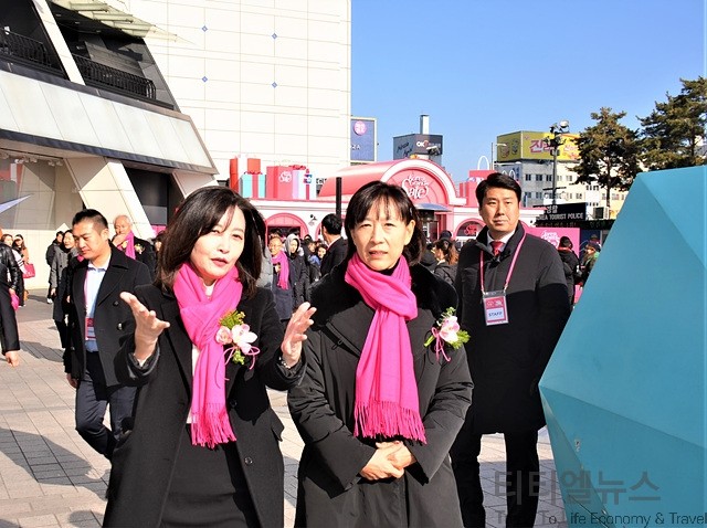 ▲2020 코리아그랜드세일 개막식 직후 여행자 서비스 센터로 이동하면서 이야기를 나누고 있는 최윤희 문화체육관광부 차관(우측)과 한경아 한국방문위원회 사무국장 이날 개막식에 참석한 최윤희 차관은 “코리아그랜드세일은 다양한 민간 기업의 참여로 10년을 이어 온 외래 관광객 유치 행사라는 점에서 의미 있다”고 평하며, “이 행사를 계기로 민관이 협력하여 한국을 적극적으로 알려 외래관광객 2천만 명 시대를 열어나가겠다”고 밝혔다.