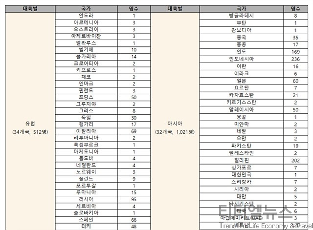 신남방 정책 협력 국가인 인도네시아(236명), 필리핀(202명), 베트남(120명)에서도 역대 최다 인원이 선발됐다. ‘신북방 정책’ 대상 국가 중에서는 처음으로 명예기자로 선발된 벨라루스 1명을 비롯해 러시아 95명, 우크라이나 12명 등이 포함됐다.